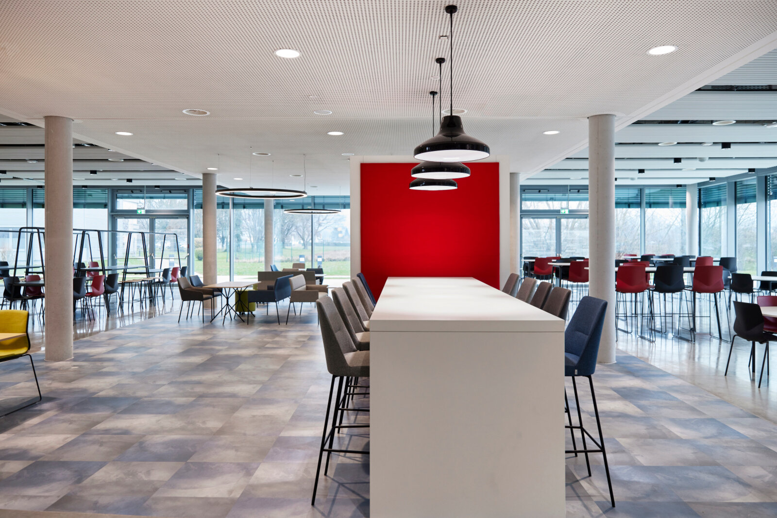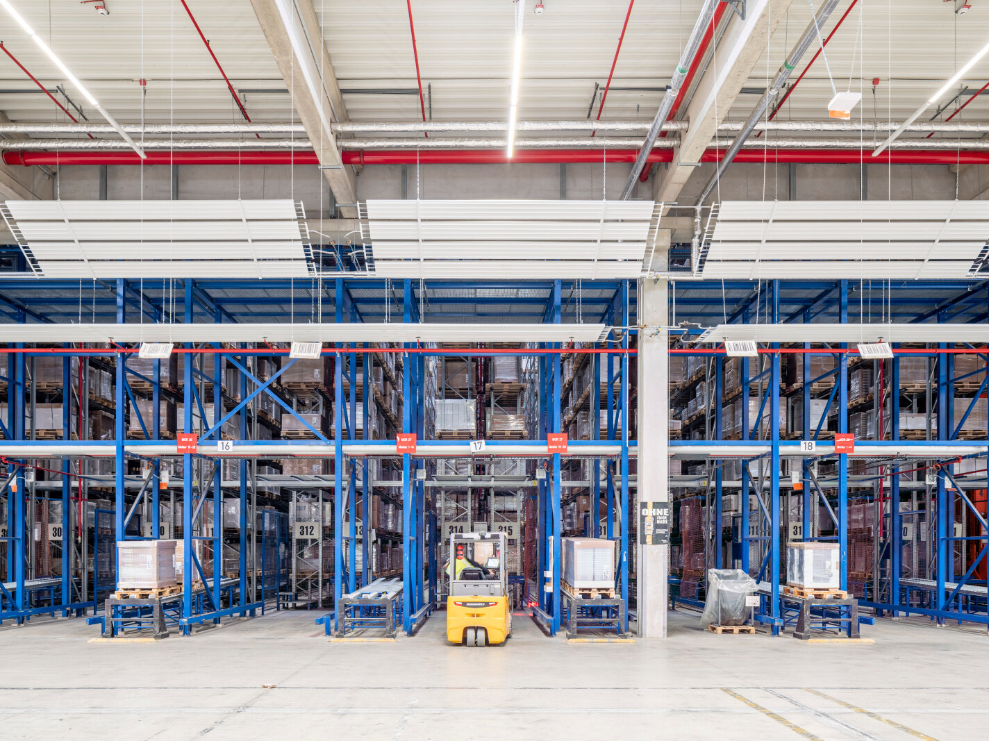Heating and cooling ceilings are available in open and closed versions. Therefore, there are many variants for integrating all kinds of other functional elements. Lamps, for example, can be integrated into cut-outs or mounted between or below the ceiling panels. Sprinklers, loudspeakers, air outlets, etc. are also placed in cut-outs.